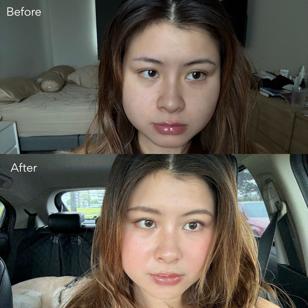 Blurs imperfections instantly for a polished, camera-ready look. No filter needed.